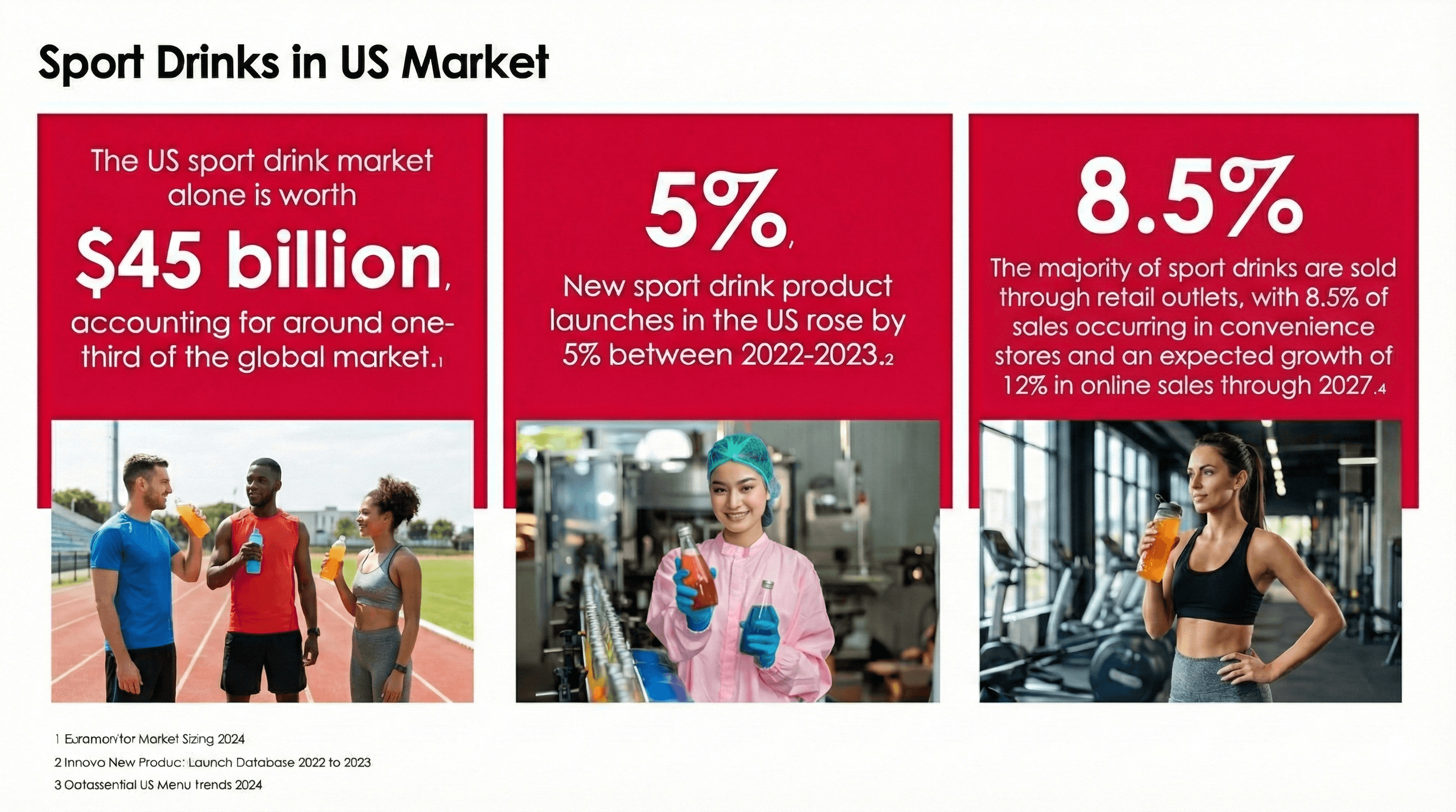 A global food & beverage group engaged us to explore the fast-growing sports beverage market and define how to stand out in a highly competitive landscape. Our objective was to design an innovation strategy that balances performance credibility with lifestyle appeal—creating products that support hydration, energy, and recovery while remaining emotionally engaging. Using our cross-industry methodology, we drew inspiration from sports, nutrition, and lifestyle brands to design a portfolio of differentiated product concepts with strong positioning, helping the brand establish credibility and desirability in the sports beverage category.
